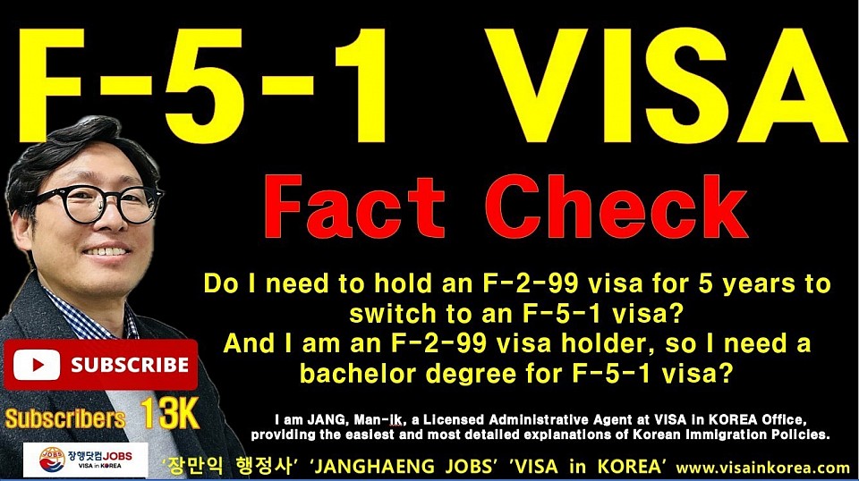 Recently, rumors have been circulating in the community that one must hold an F-2-99 visa for 5 years to switch to an F-5-1 visa. It is reported that the community is telling its members that guidelines regarding the F-5-1 visa have recently changed.